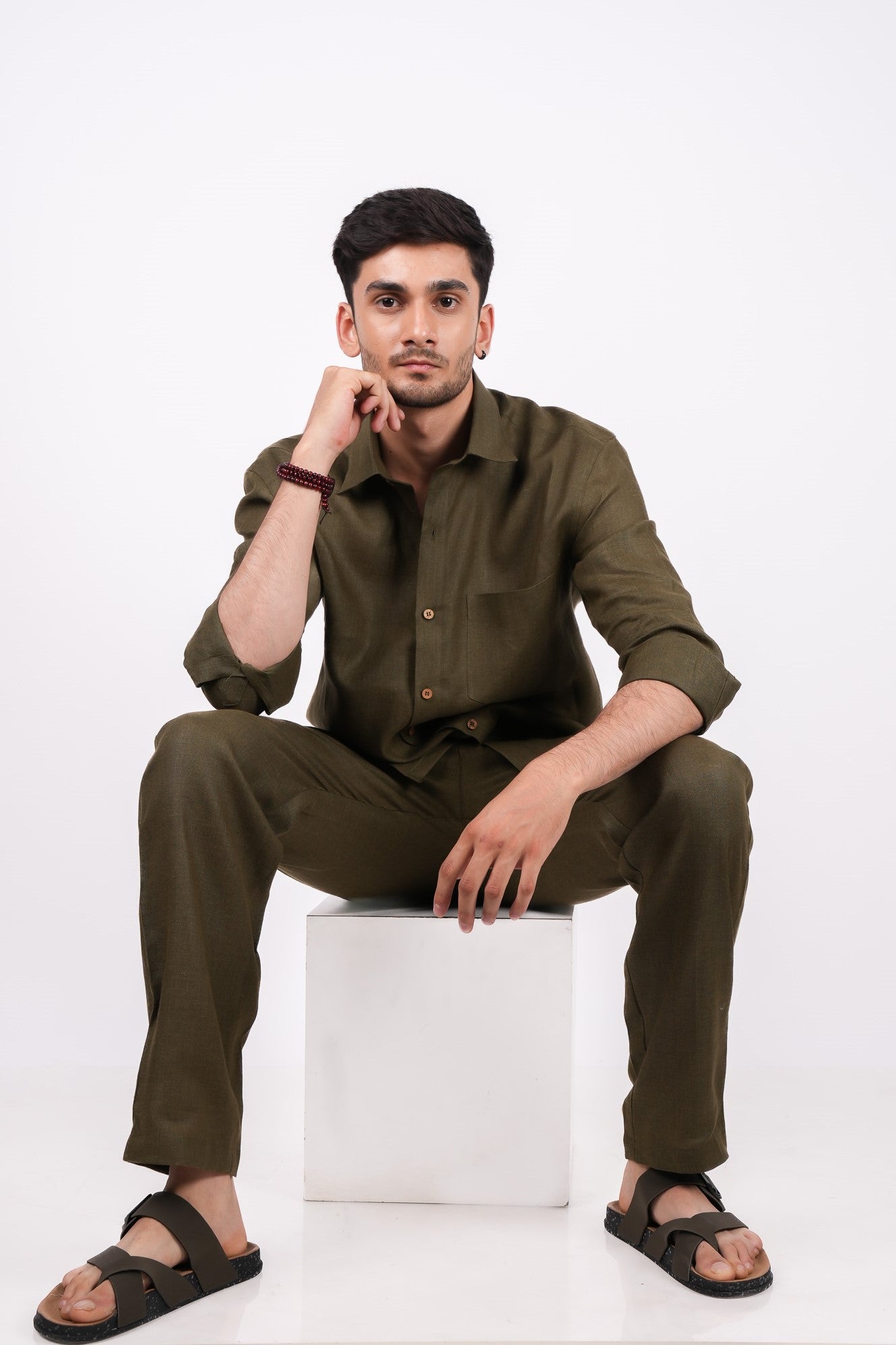 Mocha Brown Linen Co-Ord Set - Includes Pair of Pants and Full Sleeves Shirt