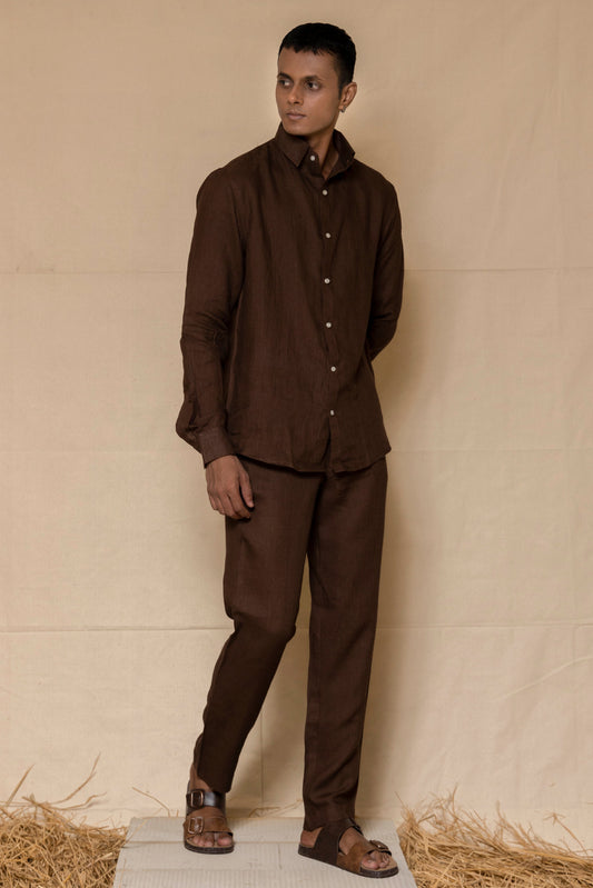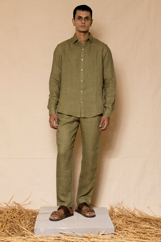 CRISS CROSS - EMBROIDERED PURE LINEN SHIRT MEN
