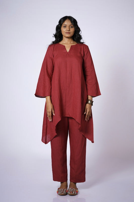 SHAHIBIND ASSYMETRIC LINEN KURTA SET