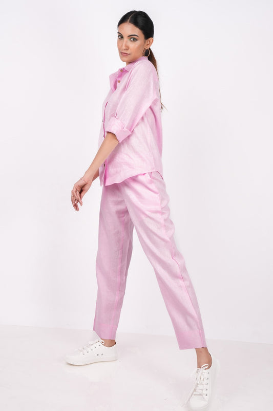 Baby Pink Linen Co-Ord Set - Pants and Full Sleeves Shirt