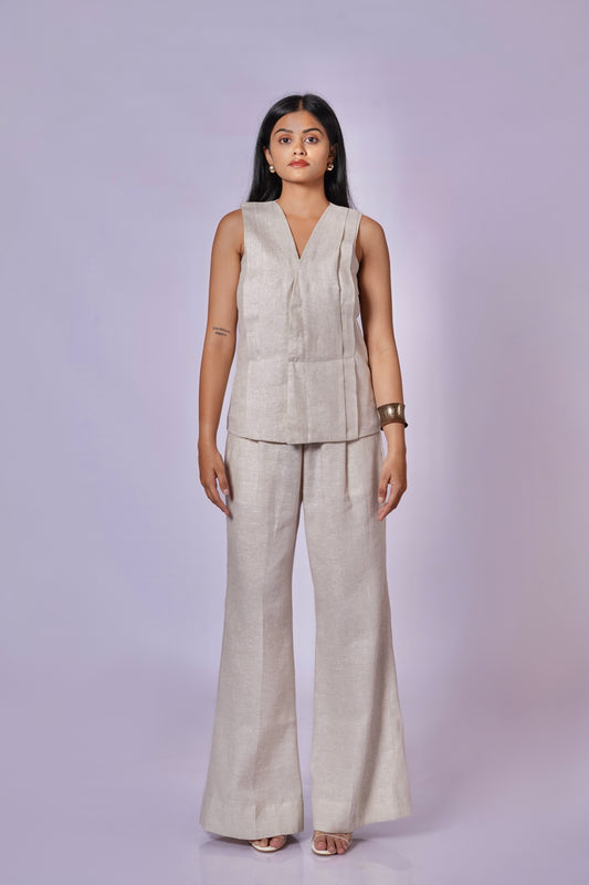 EARTHY NATURAL UNDYED LINEN VEST SET