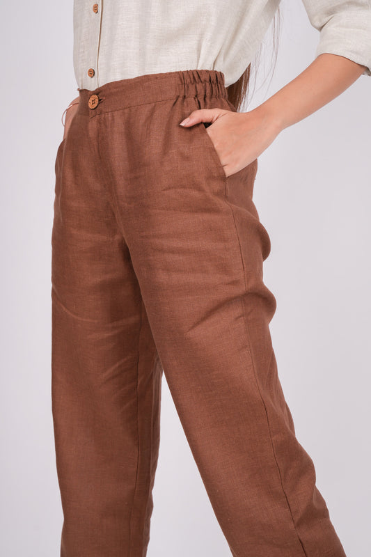 Mocha Brown Flat Front Linen Pants