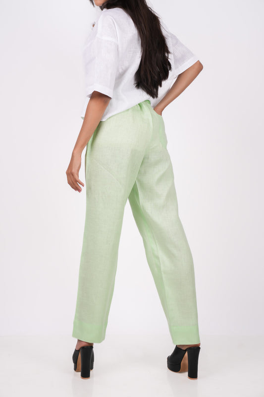 Kiwi Green Flat Front Linen Pants