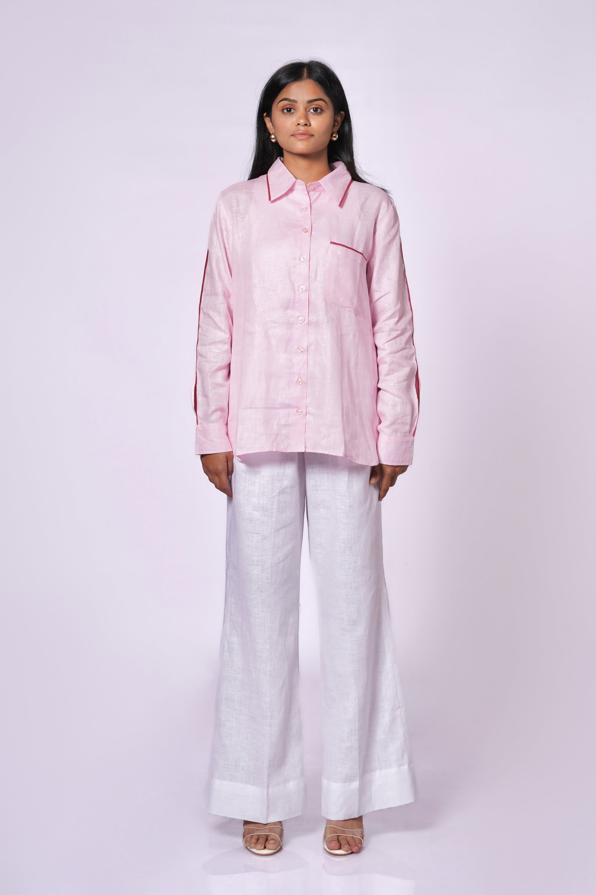 BABY PINK LINEN SHIRT WITH SATIN DETAILING