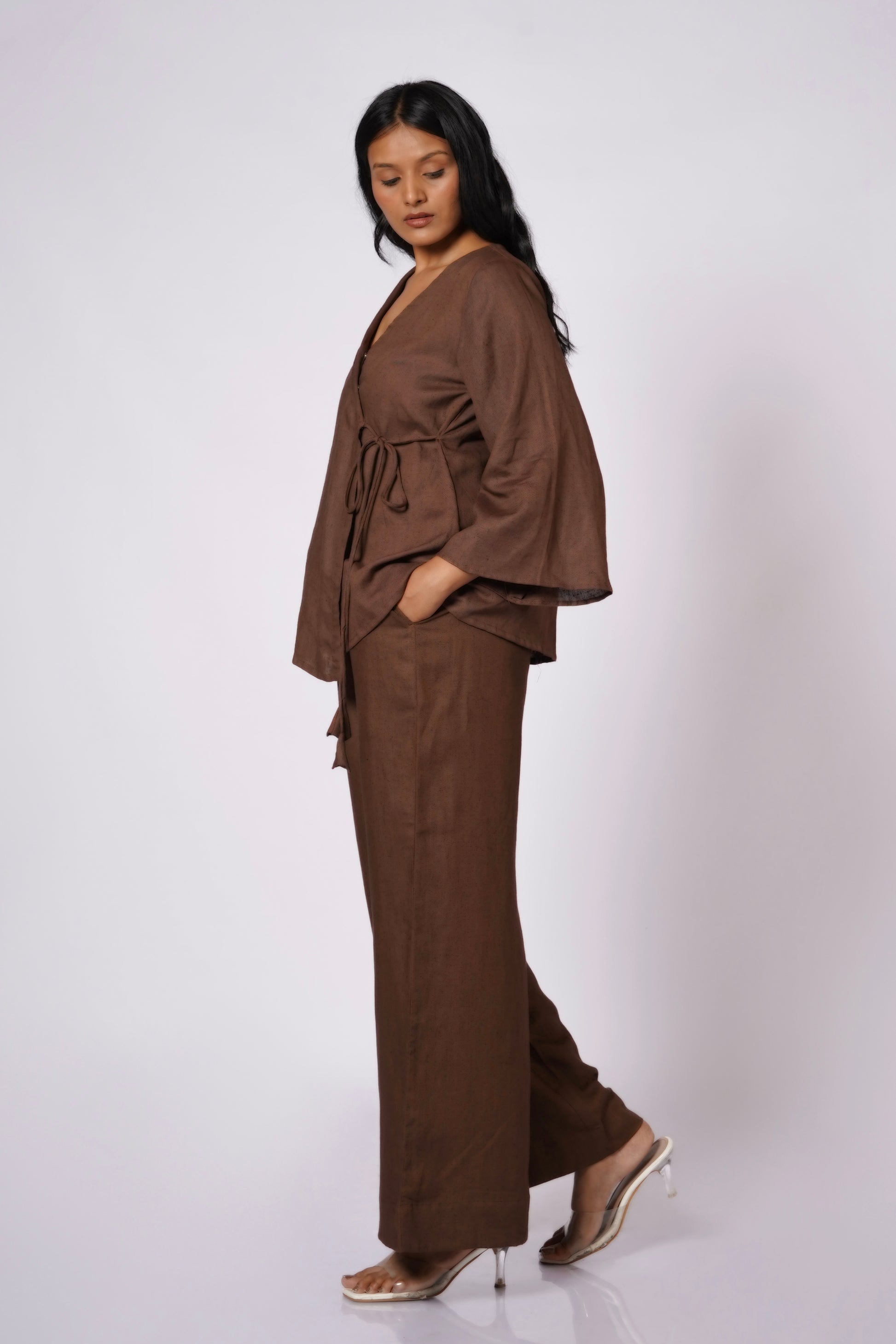 This luxurious and effortlessly chic two-piece set is crafted from 100% pure, breathable linen in a deep, rich Chocolate Brown colour.