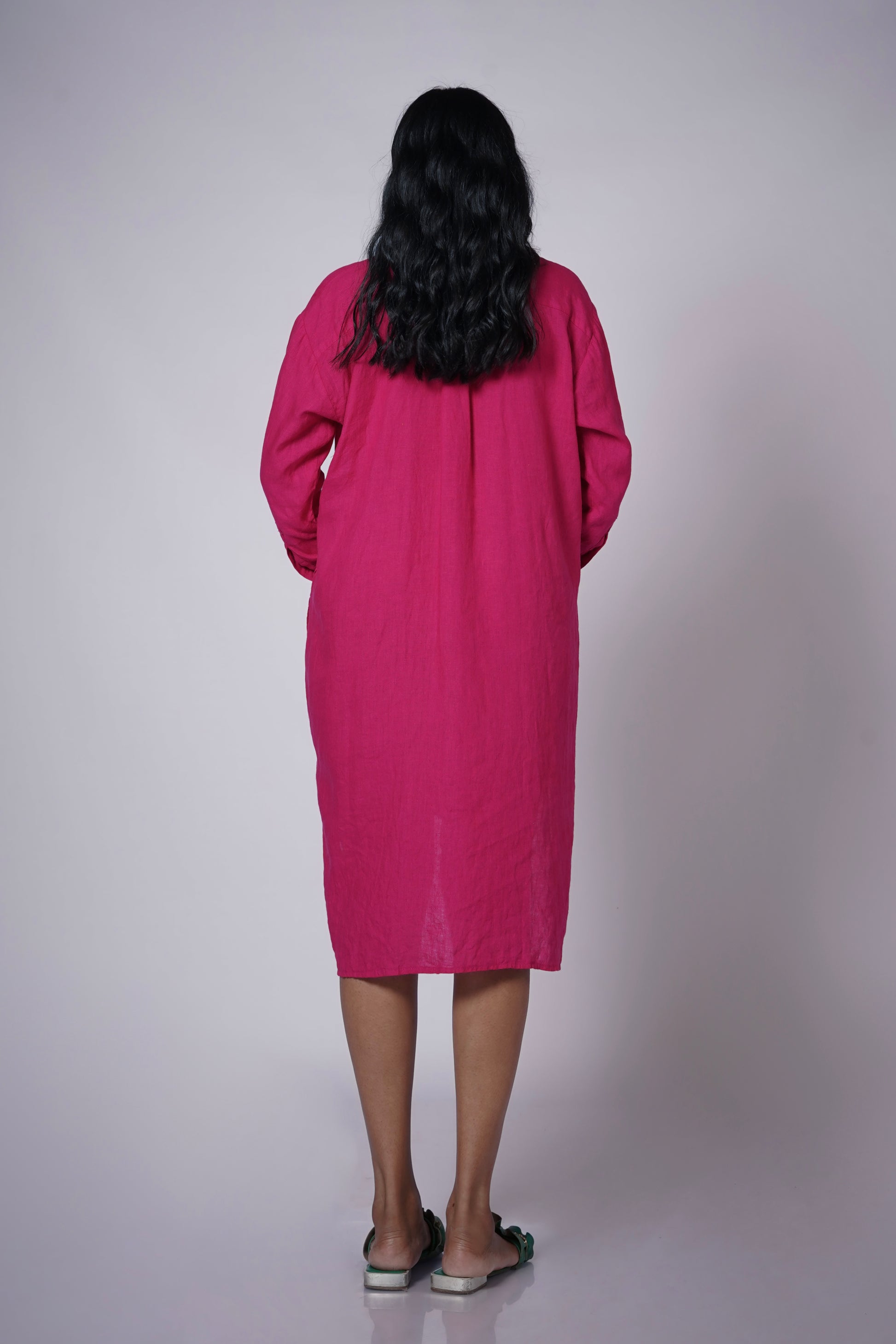 Is it a dress? Is it a tunic? Well, it’s whatever you want it to be! The Rajmala Linen Shirt Dress in vibrant pink is your go-to for every mood and moment. Work, play, brunch, or lounge—it moves with you effortlessly. Button it up as a dress, layer it over a slip, pair it with pants, or add a belt to define your waist—or don’t. Made from breathable linen, Rajmala blends comfort, color, and versatility in the most stylish way.
